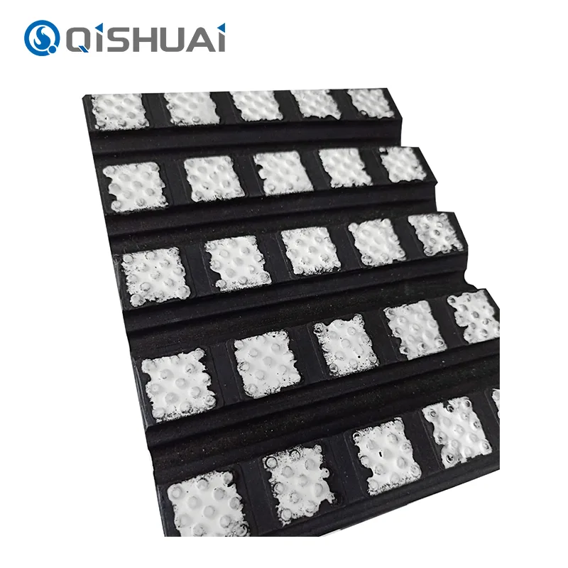 El deslizamiento es un problema problemático durante el transporte de materiales. No sólo reduce la eficiencia de la transmisión, sino que también puede provocar acumulación de material, fallas en el equipo y una serie de otros problemas. Nuestro producto de Shandong Qishuai Wear-Resistant Equipment Co., Ltd. resuelve perfectamente este problema a través de su diseño de superficie único. Las partículas cerámicas se encuentran aleatoriamente en la superficie y hay innumerables partículas pequeñas para mejorar la fricción con los materiales.